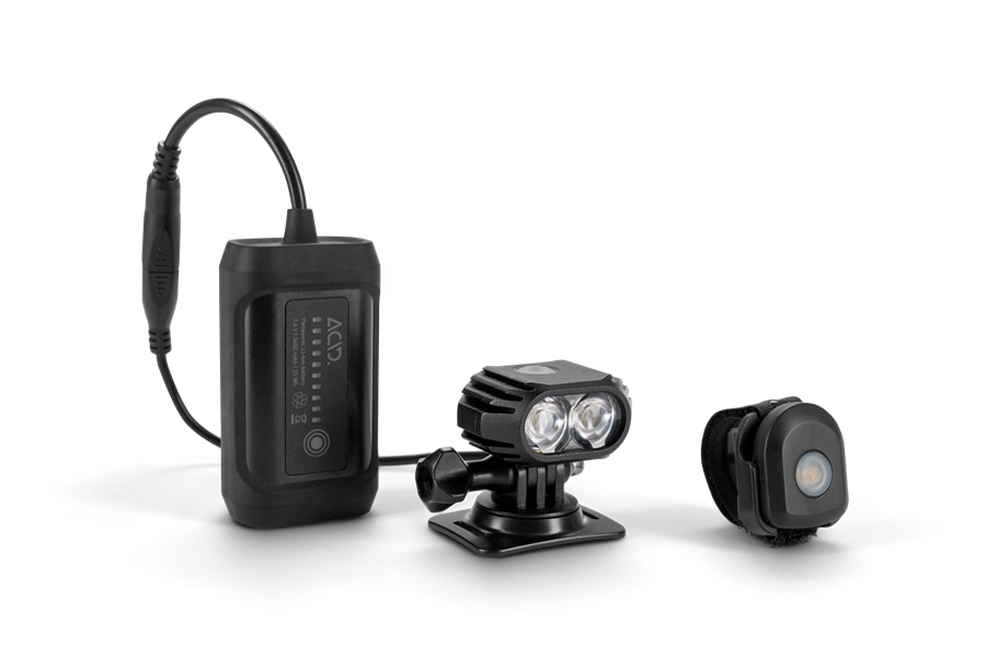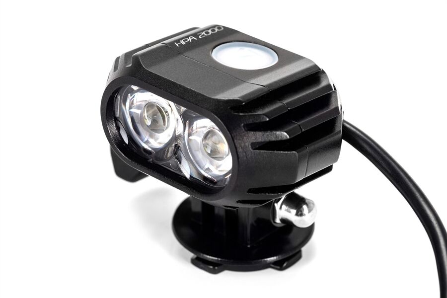 -FEATURES:LED-Licht mit bis zu 2000 Lumen, inkl. Funkfernbedienung, 2x CREE XM-L2 LED, externer Panasonic-Akku mit Batterieindikator und Rücklicht-Funktion, 7 Lichtfunktionen inklusive SOS-Signal, Schutzklasse IP68, inkl. Helmhalter und Stirnband mit X-Lock Befesti