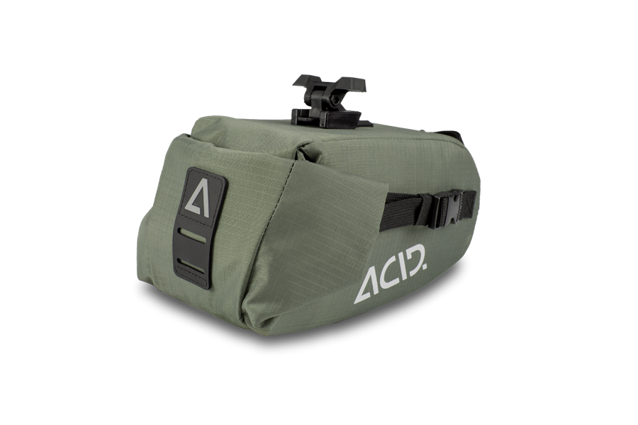 Das kompakte Design, die wasserdichte Konstruktion und der Rücklichthalter sind typische Details, die eine Satteltasche von ACID besonders machen.