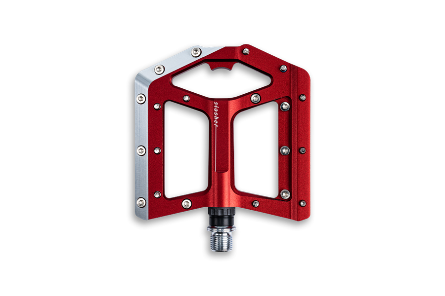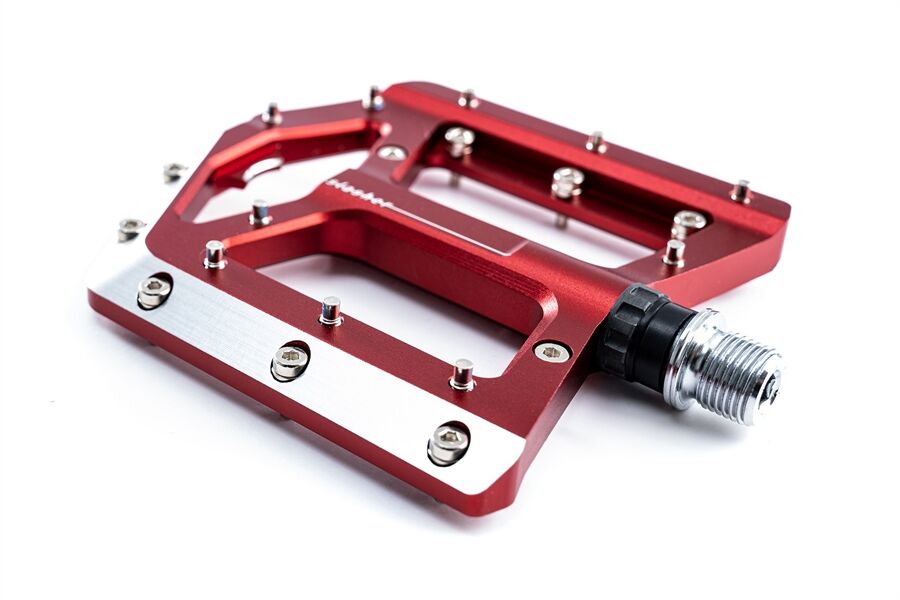 -FEATURES:leichtes Flat-Pedal, CNC-gefräster Aluminiumkörper und CrMo Achse, angefaste Kanten für erhöhte Bodenfreiheit in Kurven, große Standfläche, extrem flache Bauweise, zehn austauschbare Pins pro Seite, Unterlegscheiben zum Justieren der Pinlänge, gedichtetes