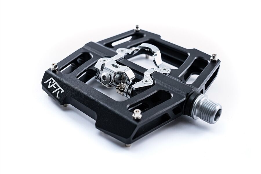 -FEATURES:Highend CNC-gefrästes Flat-Pedal mit einseitigem Klick-System, SPD-kompatibel, Industrielager, austauschbare Anti-Rutsch-Pins, CNC-gefräste CrMo-Achse