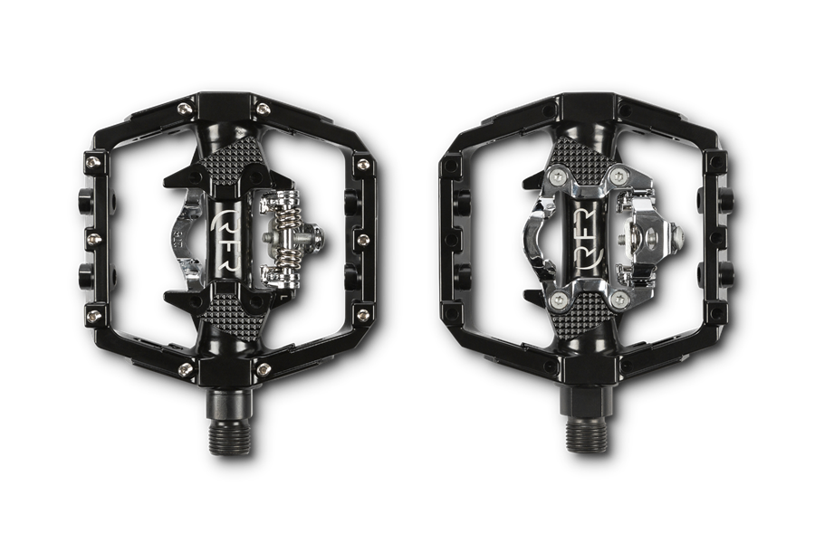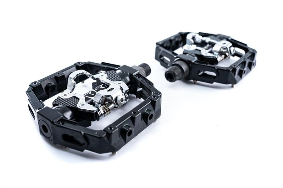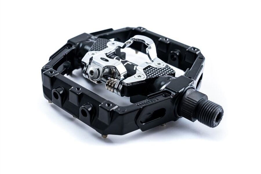 -FEATURES:Flat-Pedal mit Klick-System einseitig, SPD-kompatibel, Industrielager, austauschbare Anti-Rutsch-Pins, CNC-gefräste CrMo-Achse